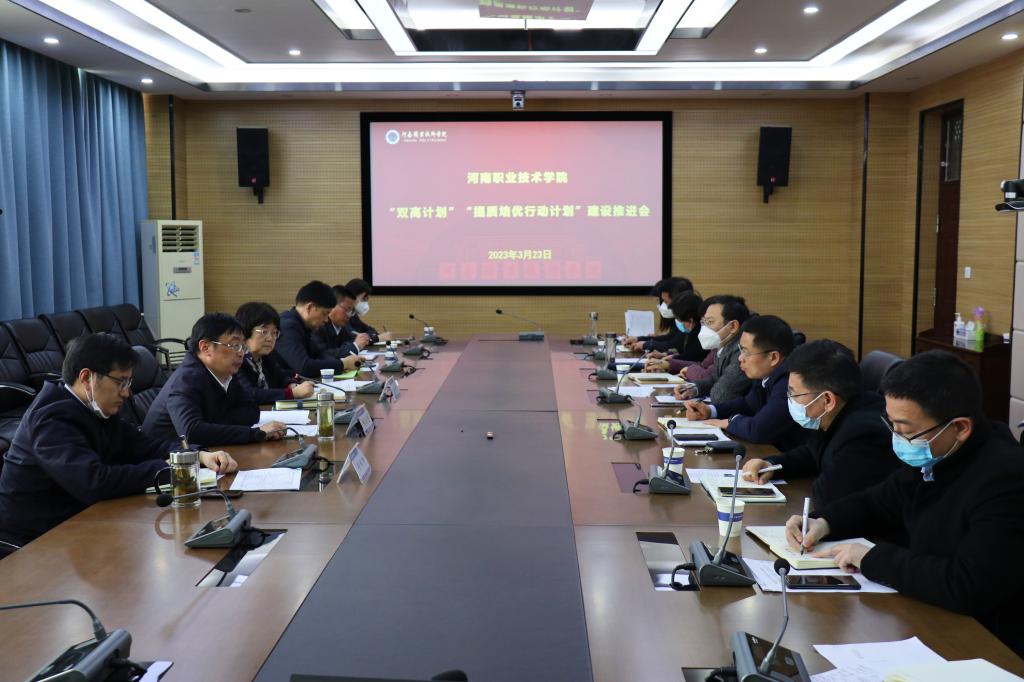 3月23日上午,2003网站太阳集团在行政楼317会议室召开“双高计划”和“提质培优行动计划”建设工作推进会。校长梅乐堂参加会议并就建设工作提出要求。各项目牵头部门及相关建设部门负责人等20余人参加会议。会议由副校长肖珑主持。